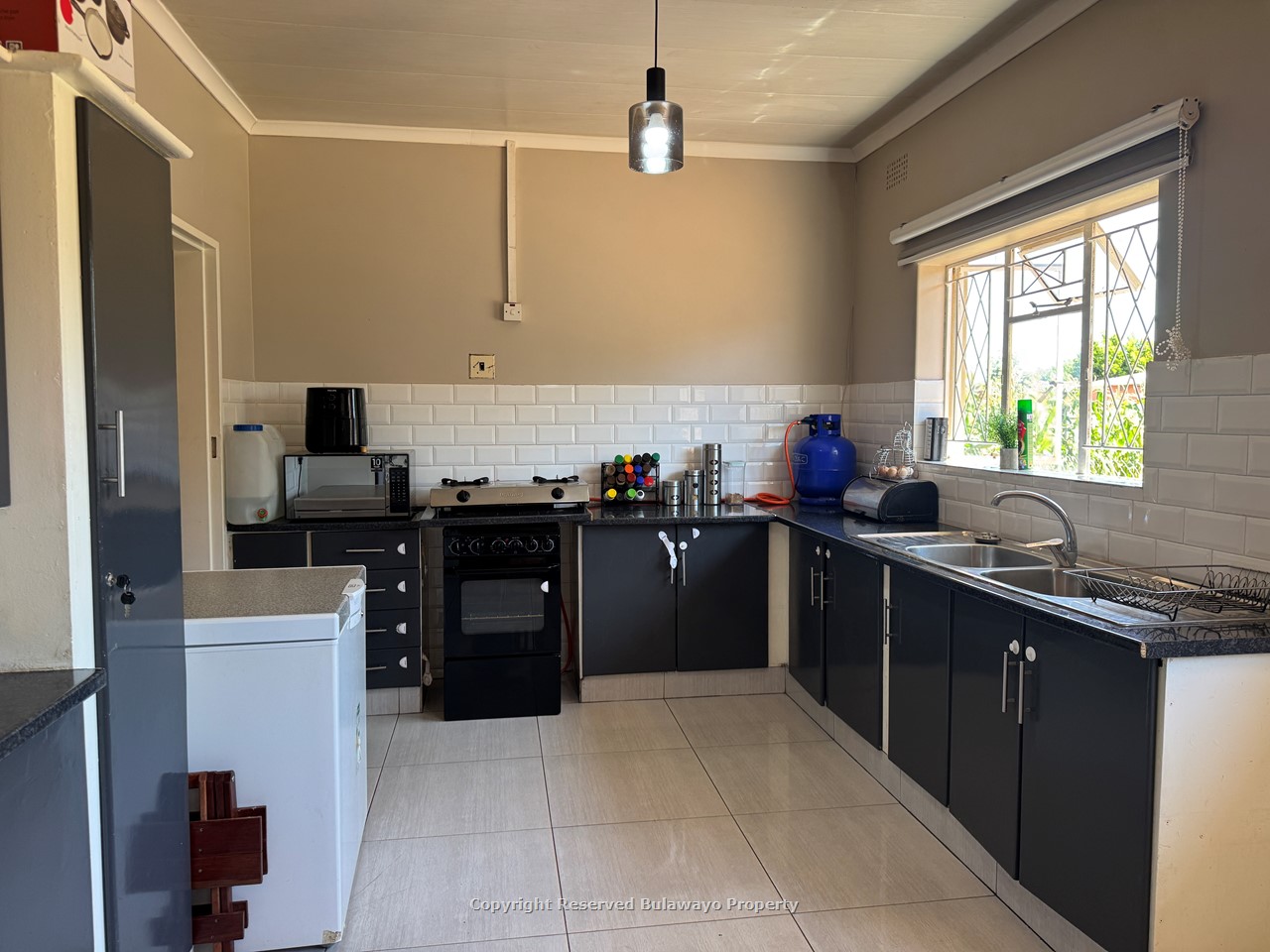 Additional features include single staff quarters, a functional borehole, a 5kVA solar system, motion sensor alarm system, two solar geysers, a 5,000-litre water tank, and the property is fully walled with a sliding gate