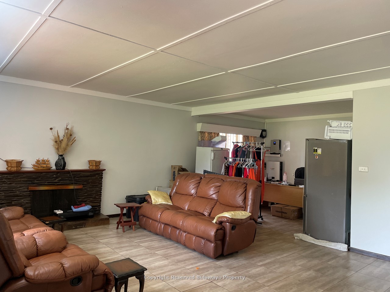 Enjoy a bright combined lounge and dining area with tiled floors and a cozy fireplace. The fitted kitchen is in good condition with formica countertops and offers the potential for a modern update. Ceilings are intact with no water damage, and the verandah provides a relaxing outdoor space.