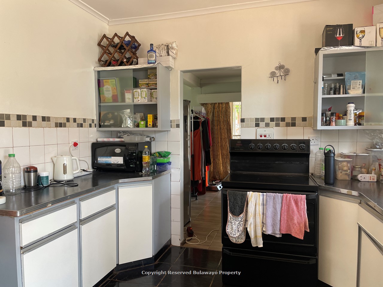 This spacious brick-under-tile home has been well maintained and sits on a generous 1,683m² stand. It features 3 bedrooms with built-in cupboards and parquet flooring, including a main bedroom with an en suite (WC, basin, and shower). The fully tiled family bathroom comes with a WC, basin, and bathtub.