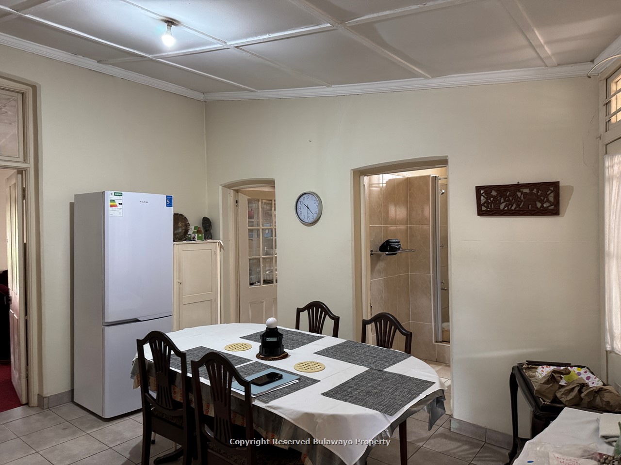 This well-maintained home offers comfortable family living with practical spaces and secure surroundings. The property features a fitted kitchen with a separate scullery, a welcoming lounge, and a dining room ideal for everyday living and entertaining. A dedicated prayer room provides added versatility and can easily serve as a fourth bedroom, having been thoughtfully converted from an enclosed verandah.